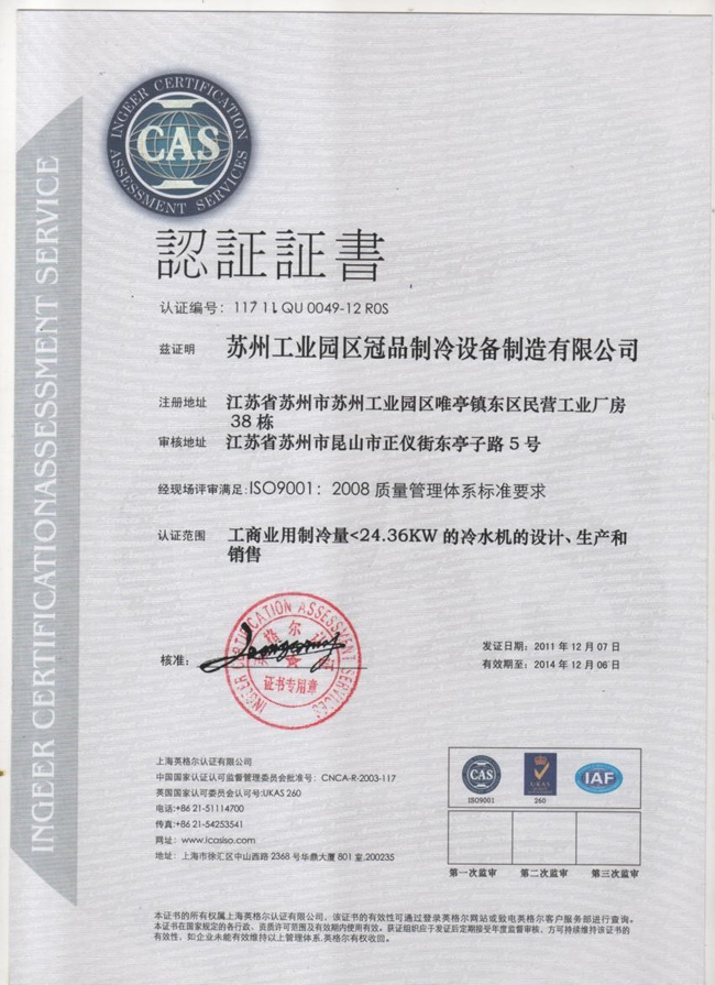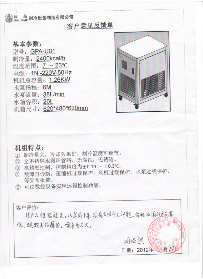 水冷式冷水機(jī),風(fēng)冷式冷水機(jī),冷水機(jī),冰水機(jī),工業(yè)冷水機(jī),蘇州冷水機(jī)廠家首選蘇州工業(yè)園區(qū)冠品制冷設(shè)備制造有限公司,歡迎前來咨詢洽談!